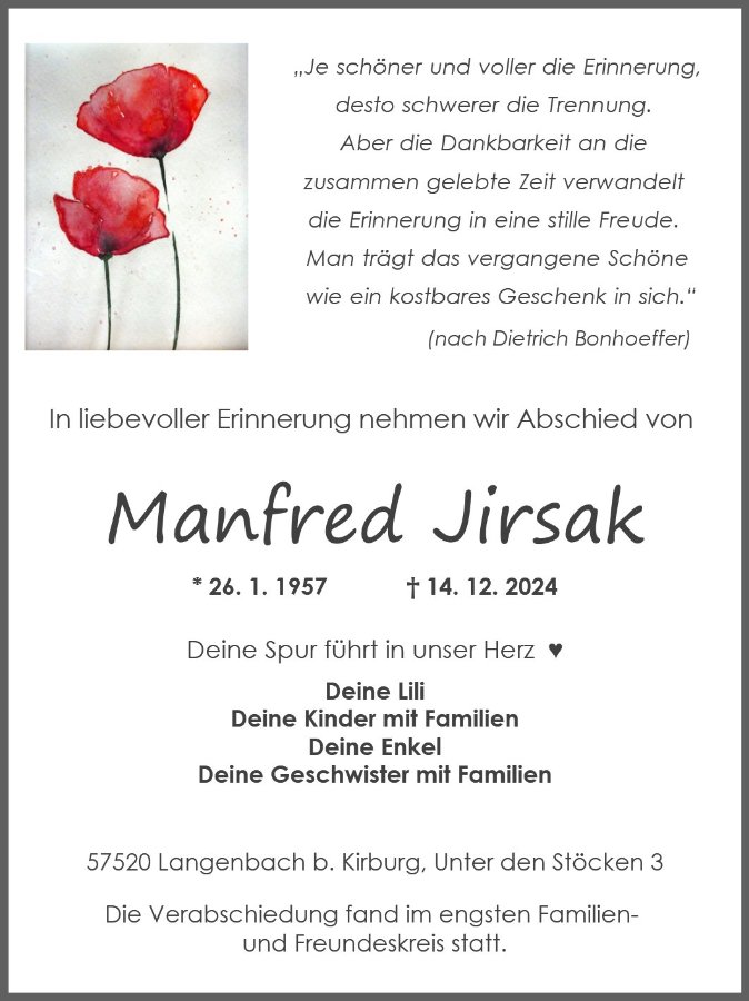 Manfred Jirsakgestorben am 14. Dezember 2024